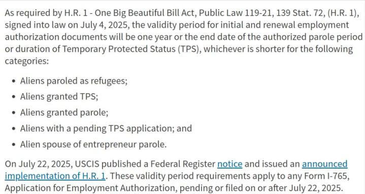 除此之外,涉及 TPS(临时保护身份)持有人,他们的工卡未来最长期限只有一年: